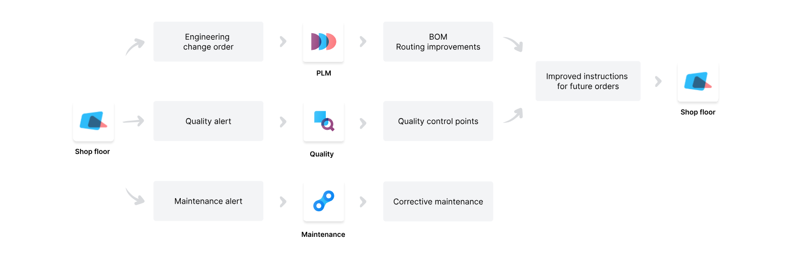 Los trabajadores pueden reportar fallas o mejoras al instante, lo que impulsa una mejora continua — uno de los principios del método Kaizen.