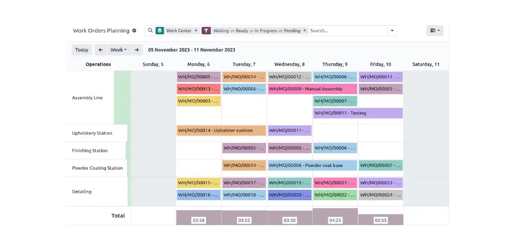 - En Odoo 17 se añadió la capacidad de combinar la carga de múltiples centros de trabajo en una vista unificada para facilitar la planificación.